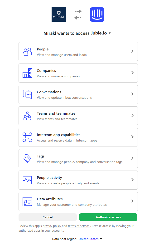 6. **Approve Access:** In your Intercom instance, approve the access request from Juble.io. This authorization allows Juble.io to connect with your Intercom account securely.