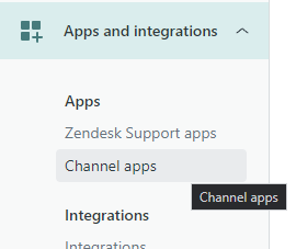 2. Go to your Zendesk Admin Center and click on the Channel apps menu.